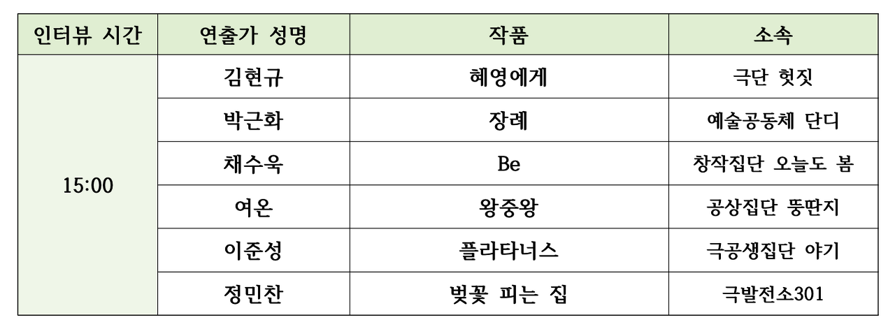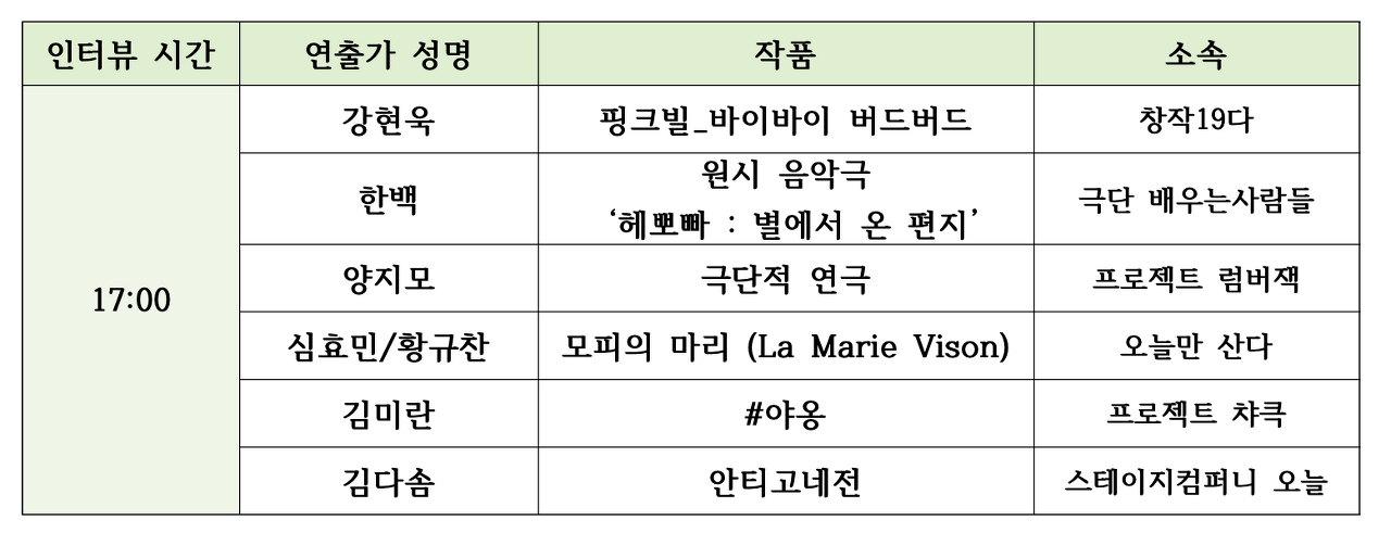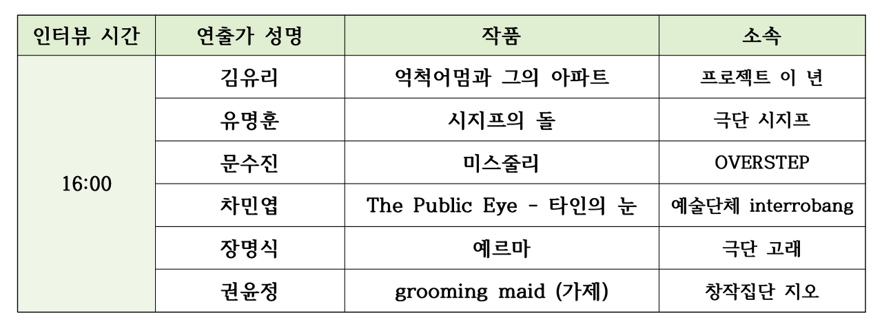 2021 제8회 신진연출가전 2차 라운드테이블 결과 발표