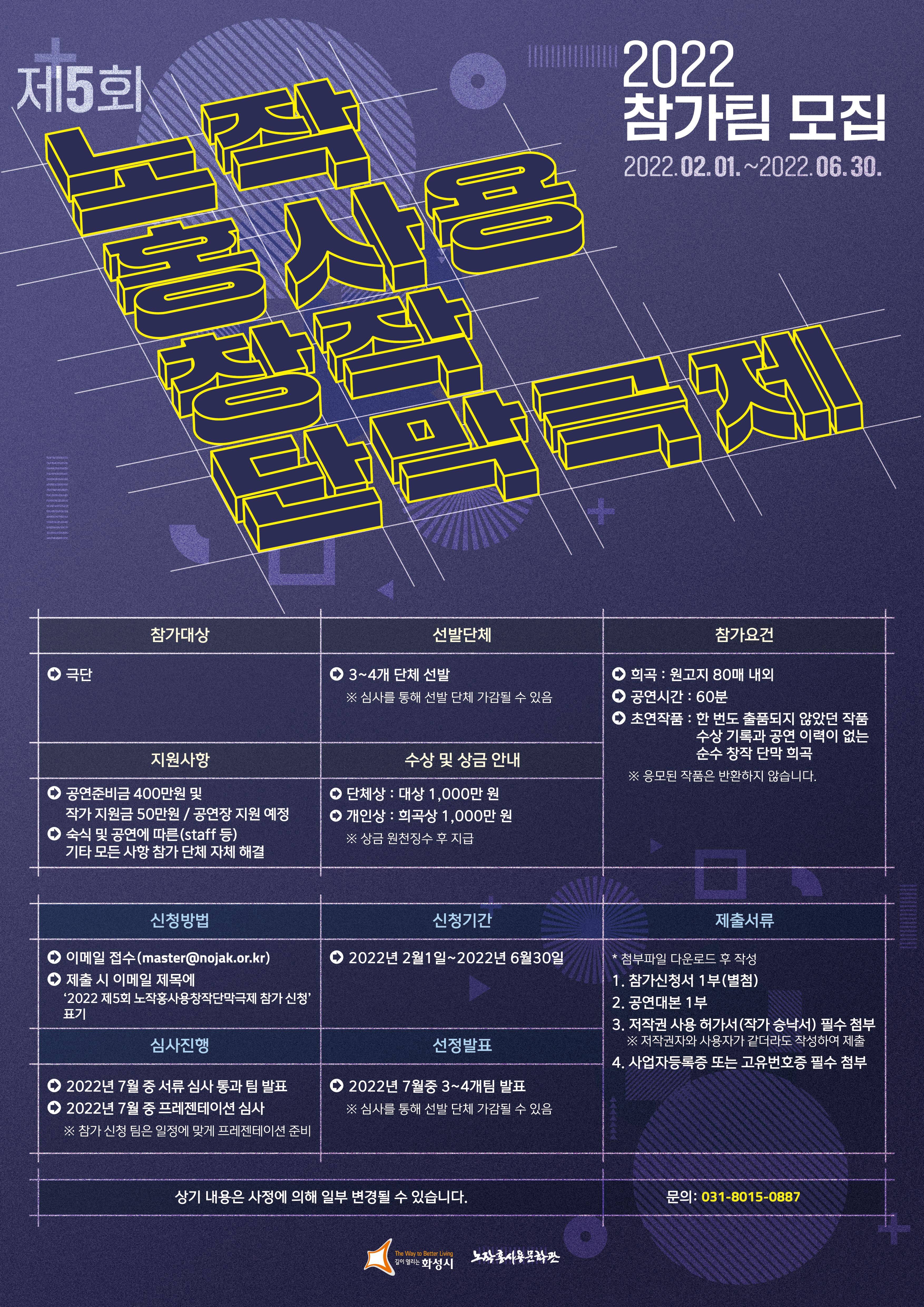 2022 제5회 노작 홍사용 창작단막극제가 참가팀을 모집하고 있습니다.