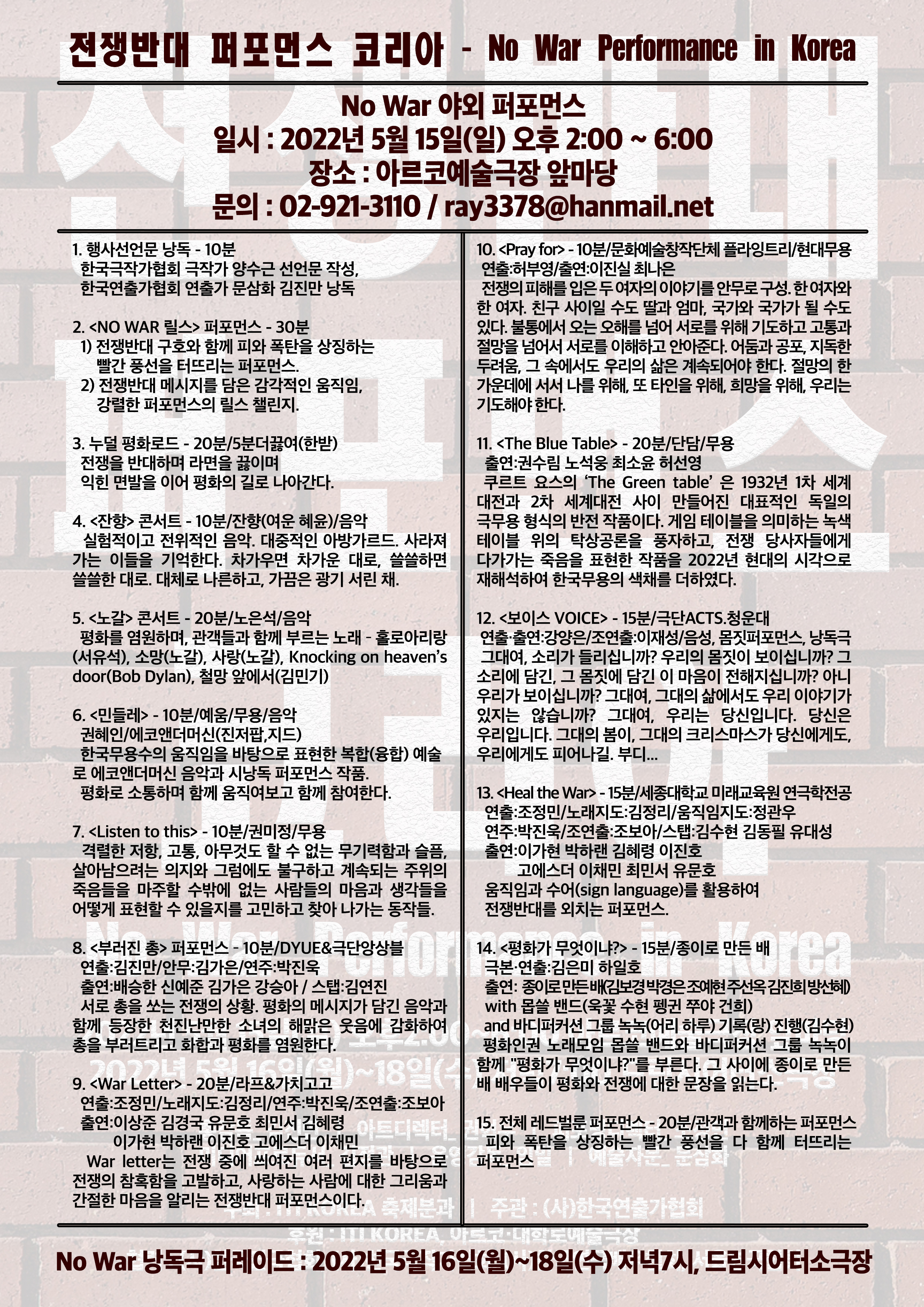 [전쟁반대 퍼포먼스 코리아] 행사가 열립니다. 많은 관심 부탁드립니다.