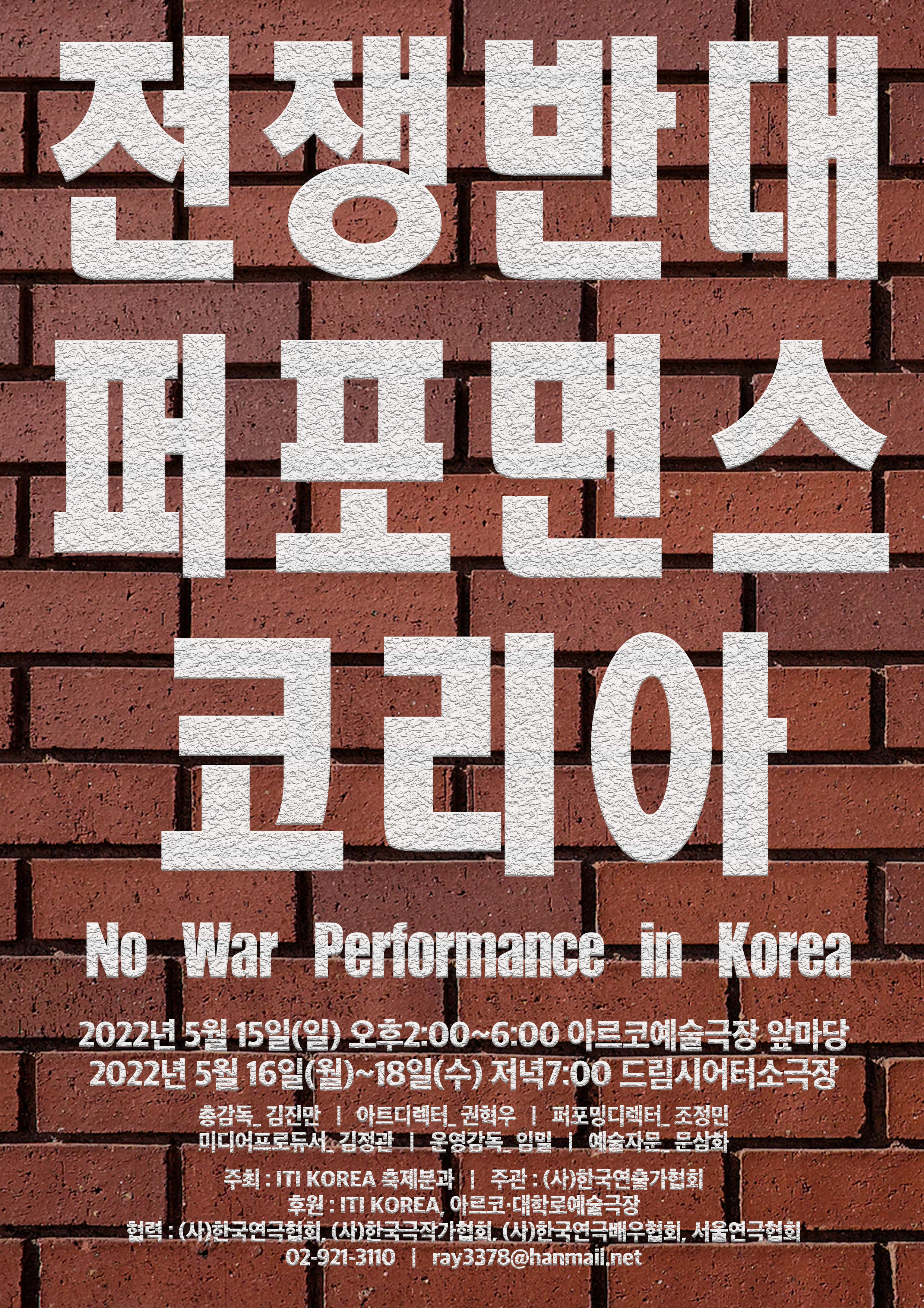 [100뉴스] 전쟁을 반대하는 예술인들의 세계평화 메시지 퍼포먼스 ‘전쟁반대 퍼포먼스 코리아’ https://www.100news.kr/19551